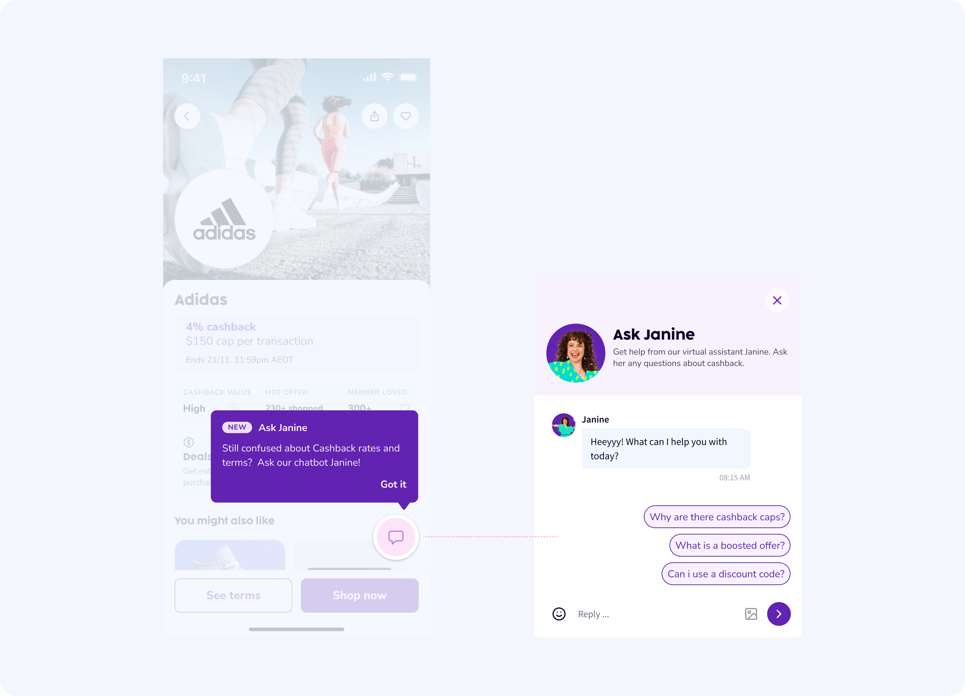 Leveraging AI and providing a chatbot at key moments of uncertainty in CRW ensures help center content is used effectively through interactions with Janine (The face of Cashrewards).