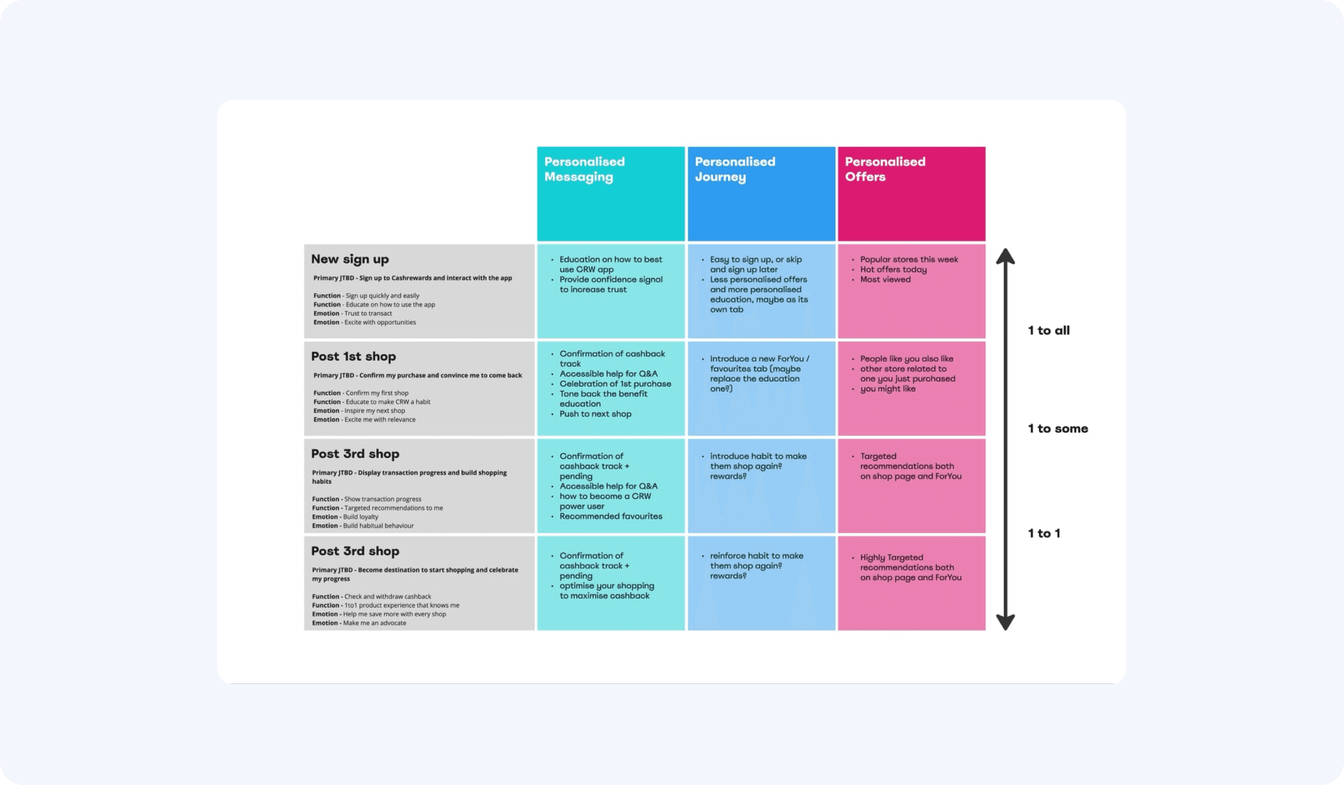As part of our personalisation efforts, i delivered a vision piece that evolved into the app's personalisation strategy roadmap.