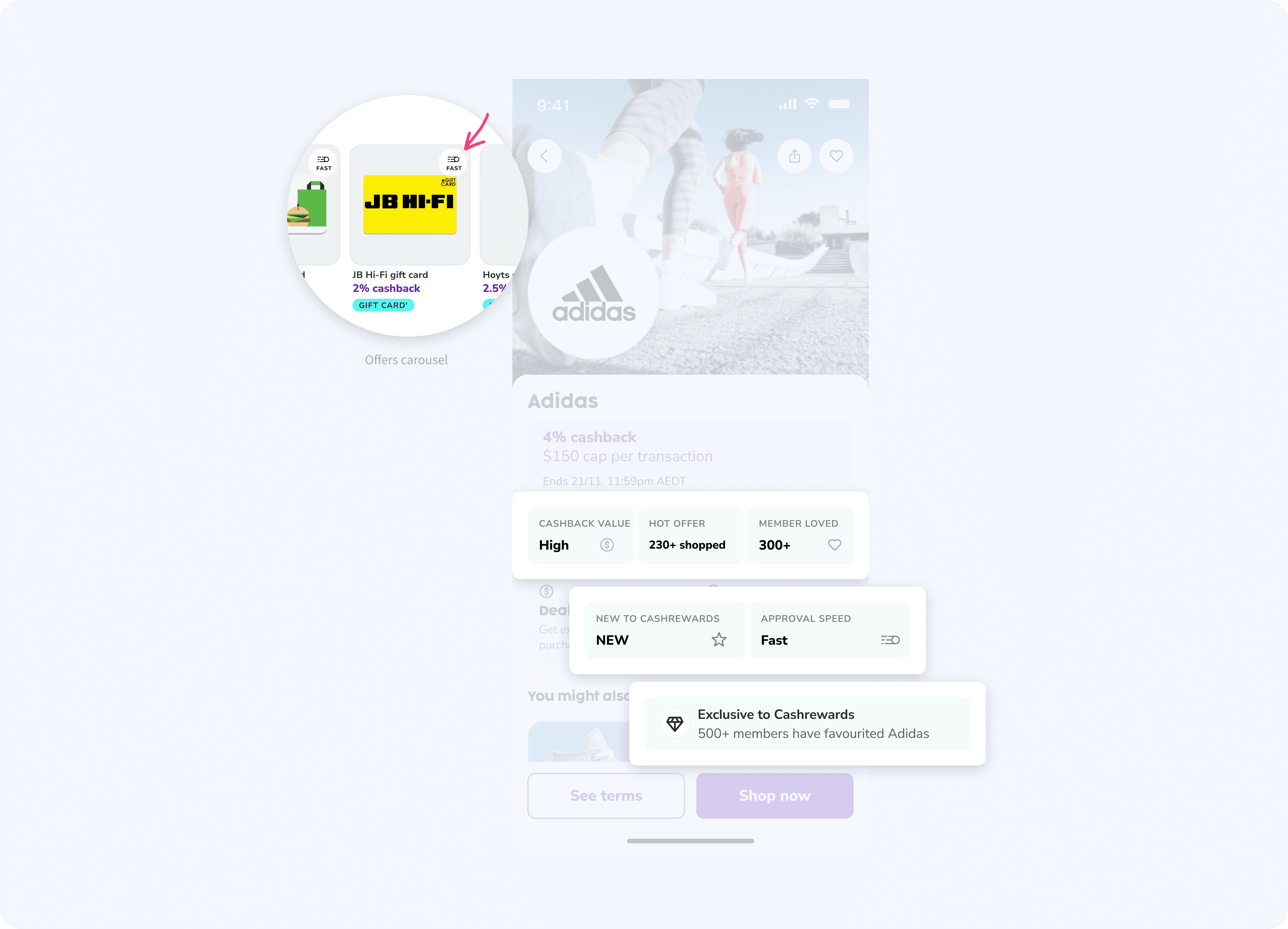 Cashrewards currently has limited methods to prominently feature major promotions, typically only showcasing them through a tile on a carousel.