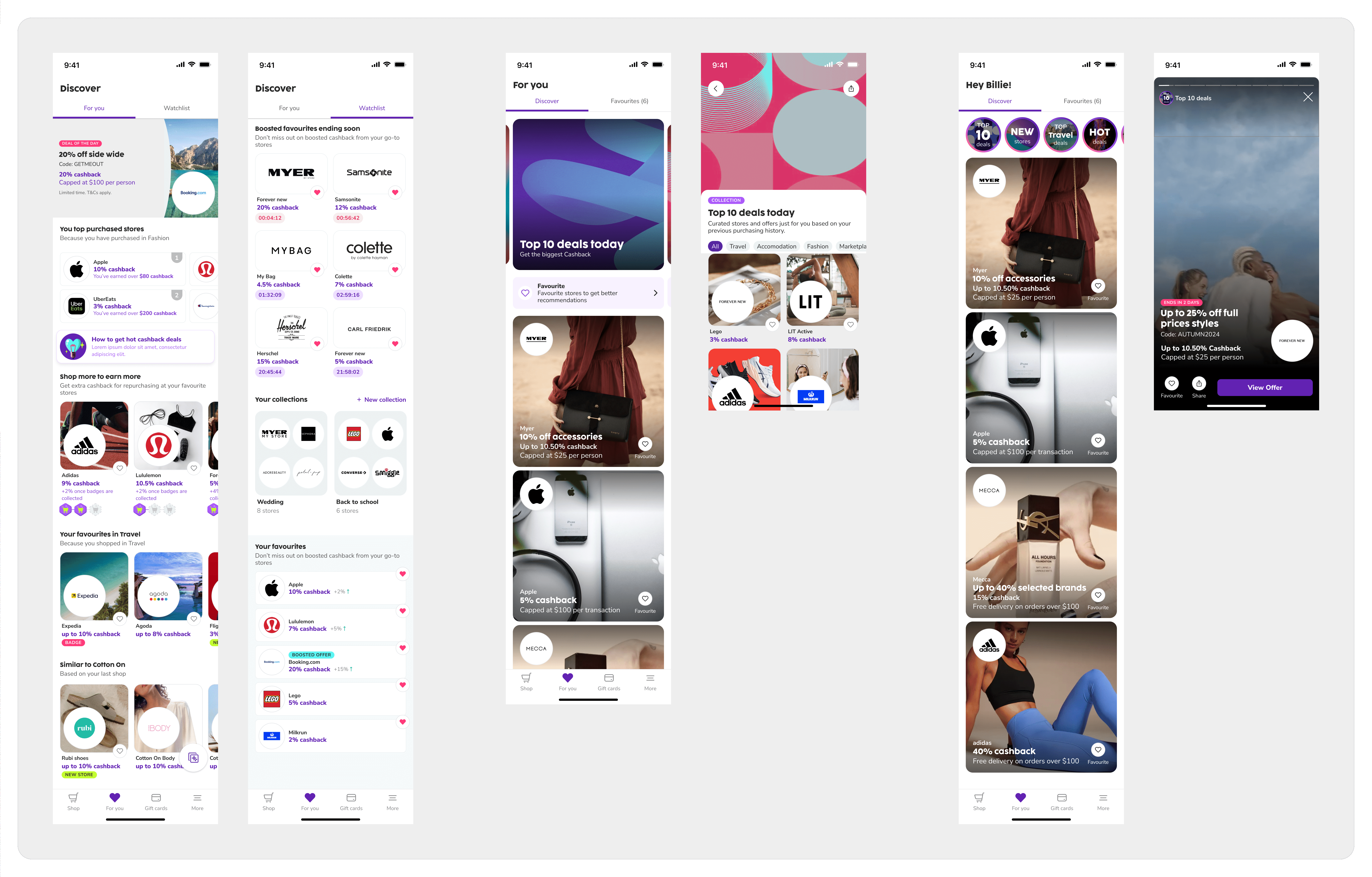 Transformed the low-engagement "Favourites" tab into a personalised "For You" page —A unique way to explore curated collections, promotions and keep track of favourites.