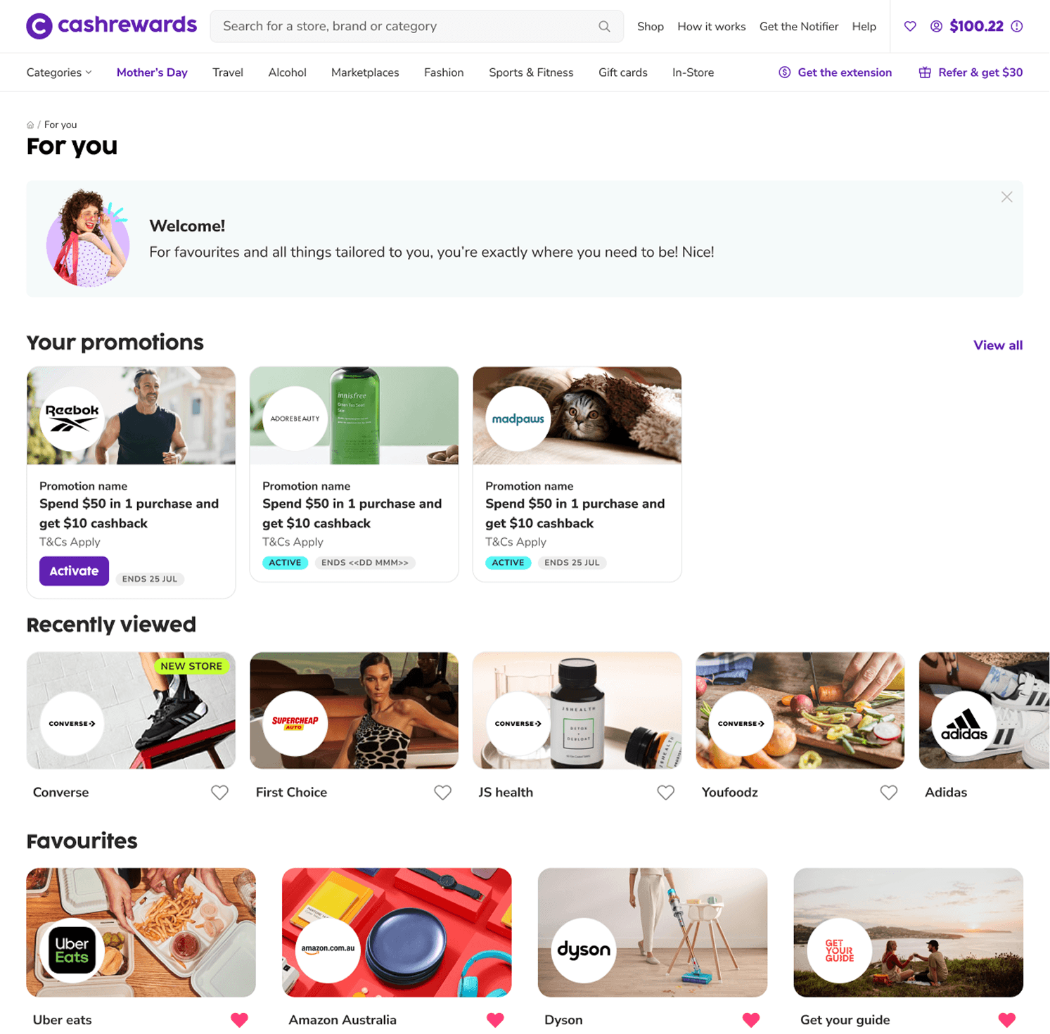 The new "For You" page features curated content, allowing users to easily revisit favourites, discover new offers, and explore alternative browsing methods