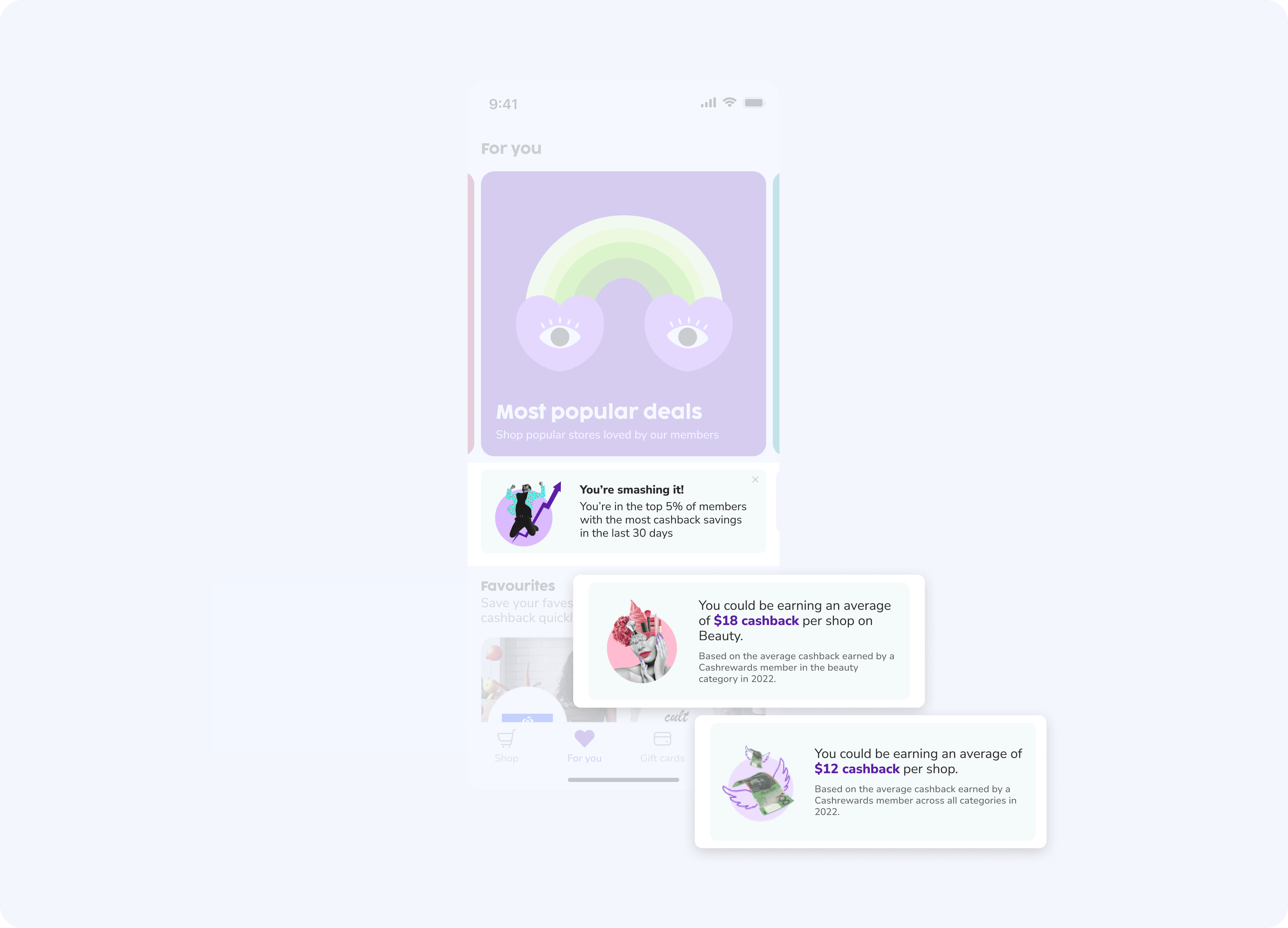 Using content cards, introduce a set of personalised statistics based on the users behaviours. Aiming to help engage and motivate users by showcasing their cashback progress, missed opportunities, and personalised savings tips.
