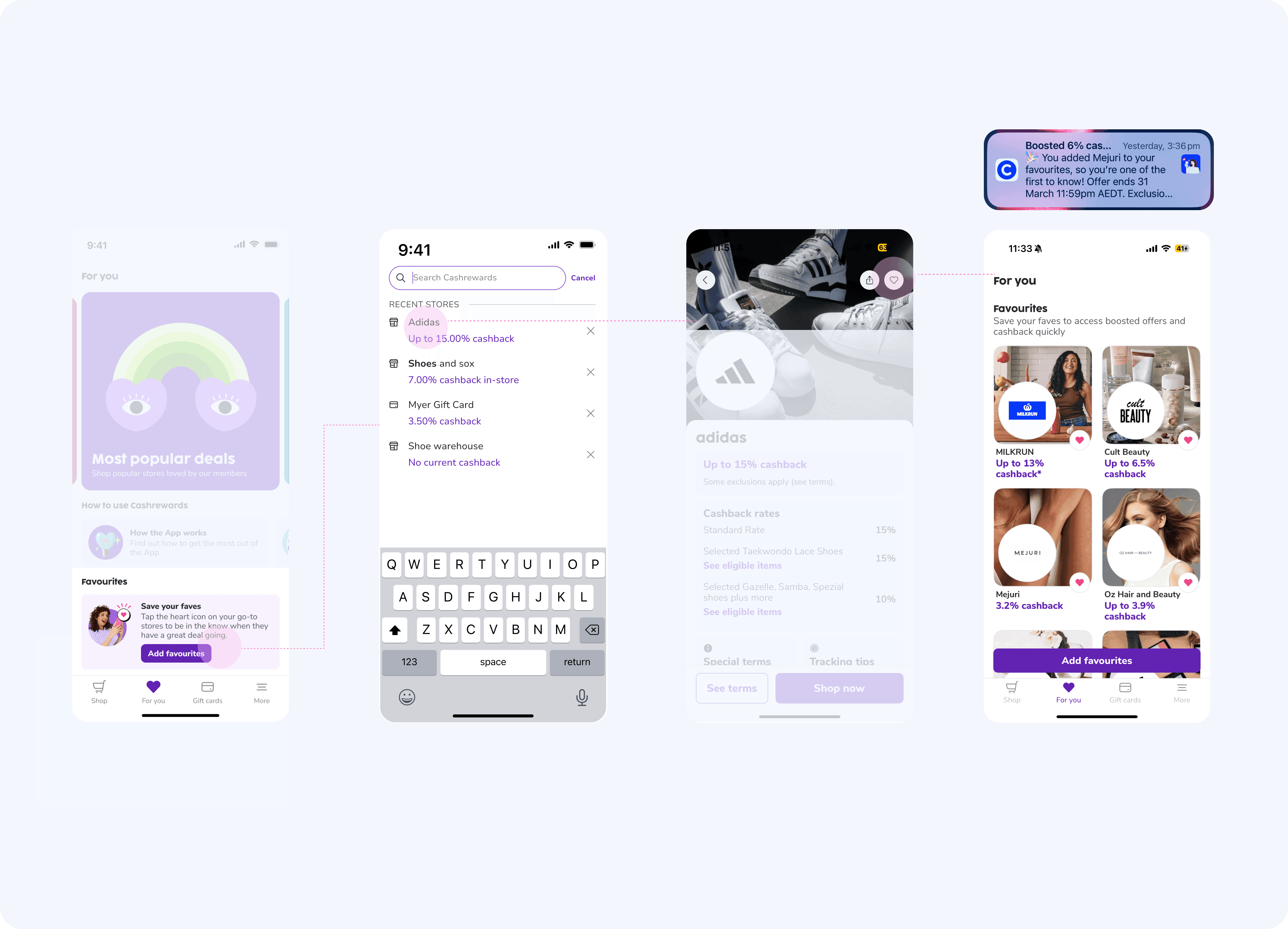 Encourage users to add to favourites, allowing them to receive alerts when their favorited stores offer boosted cashback.