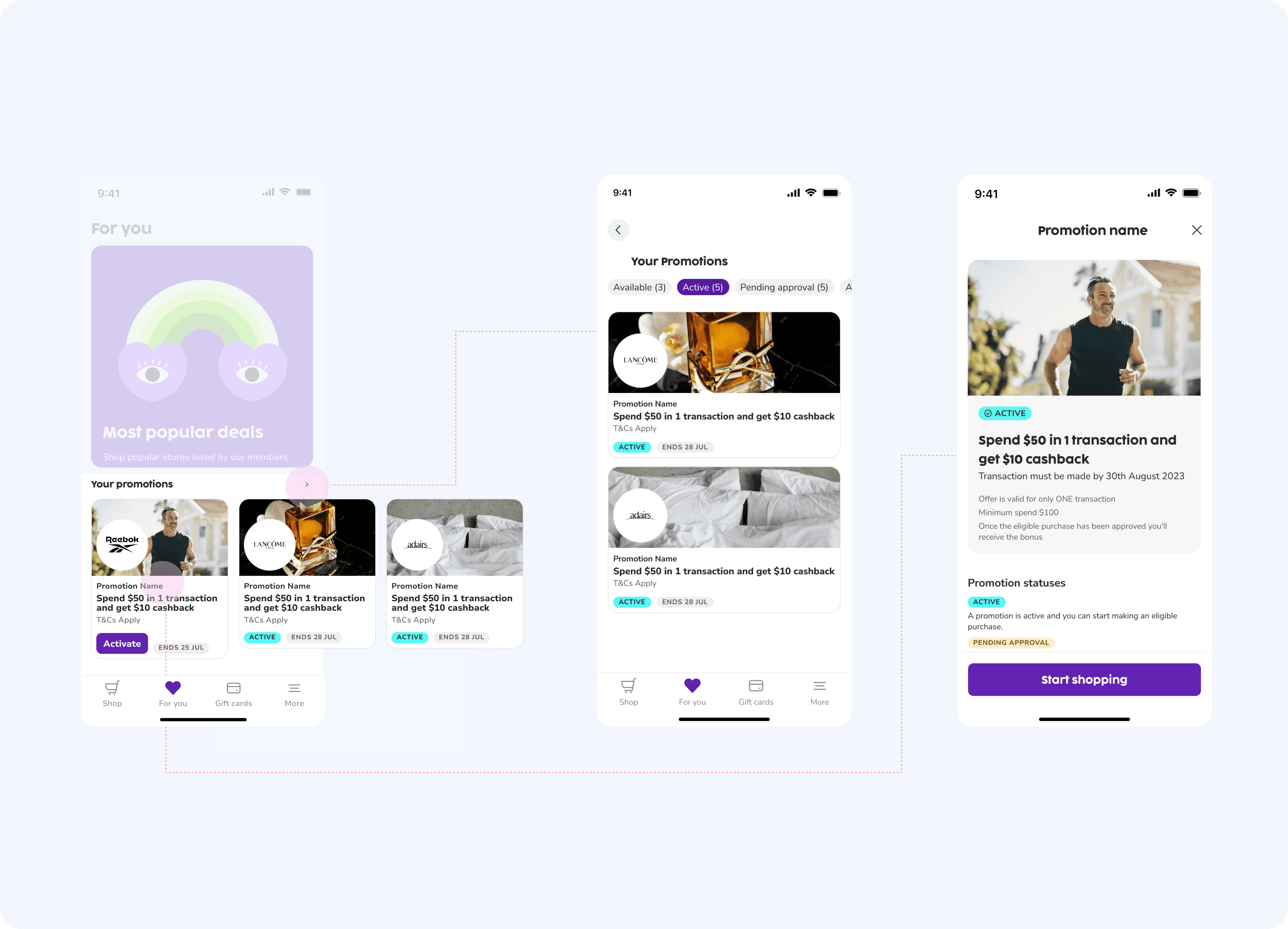 Promotions are shown to targeted users that is housed within the new personalised "For you" page. Users are able to activate and track the progress of their promotion.